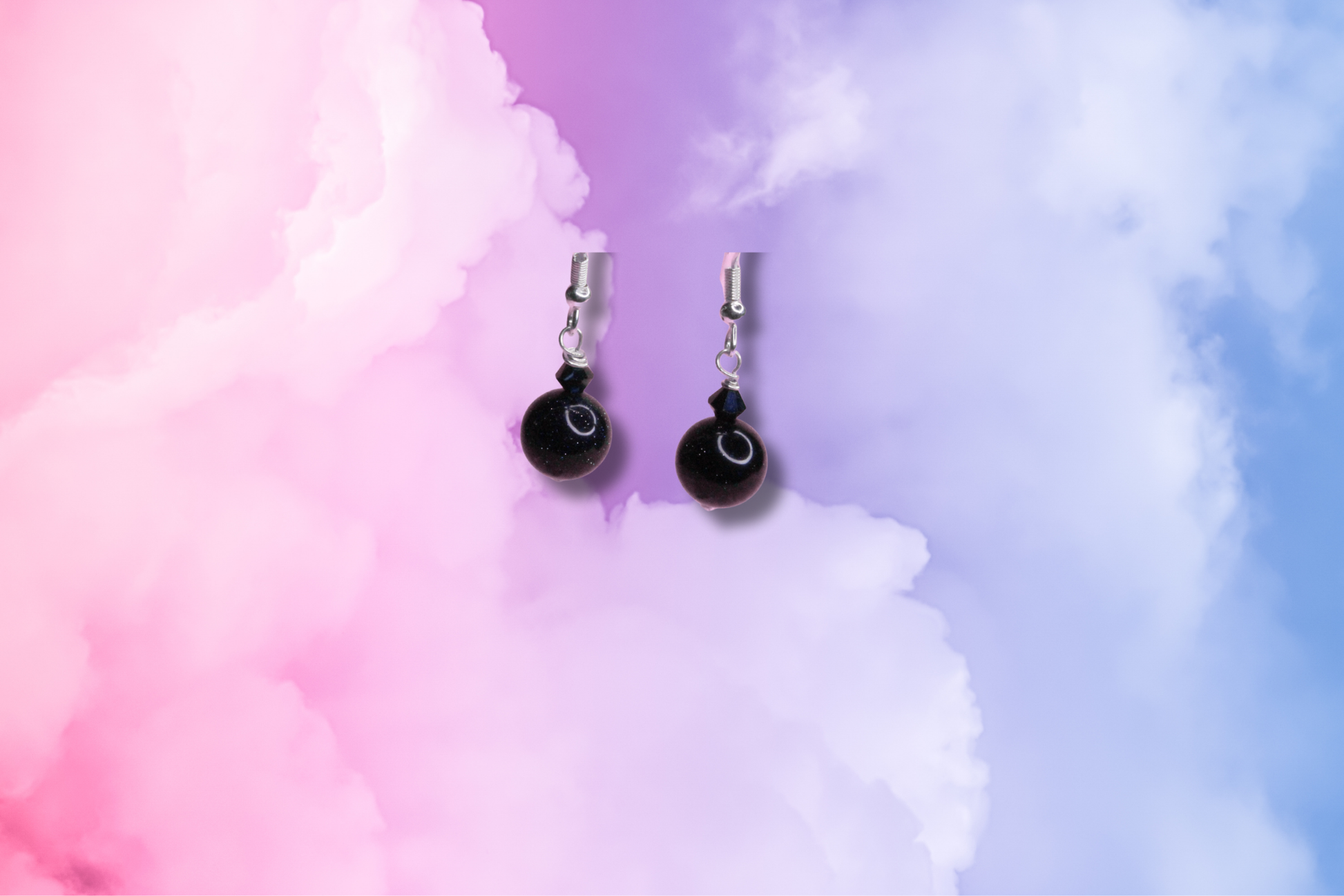 Blue Goldstone with Dark Blue Metallic Swarovski Earrings