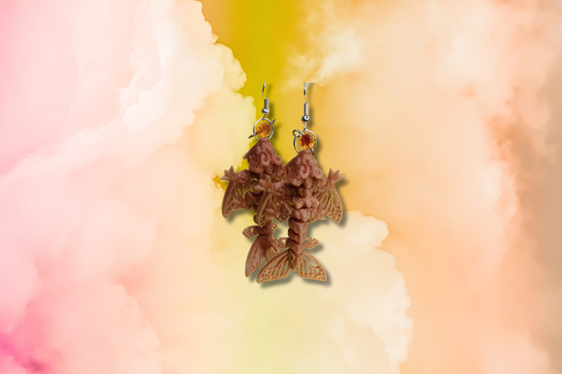 Copper 3D Butterfly Dragon with Fire Swarovski Earrings