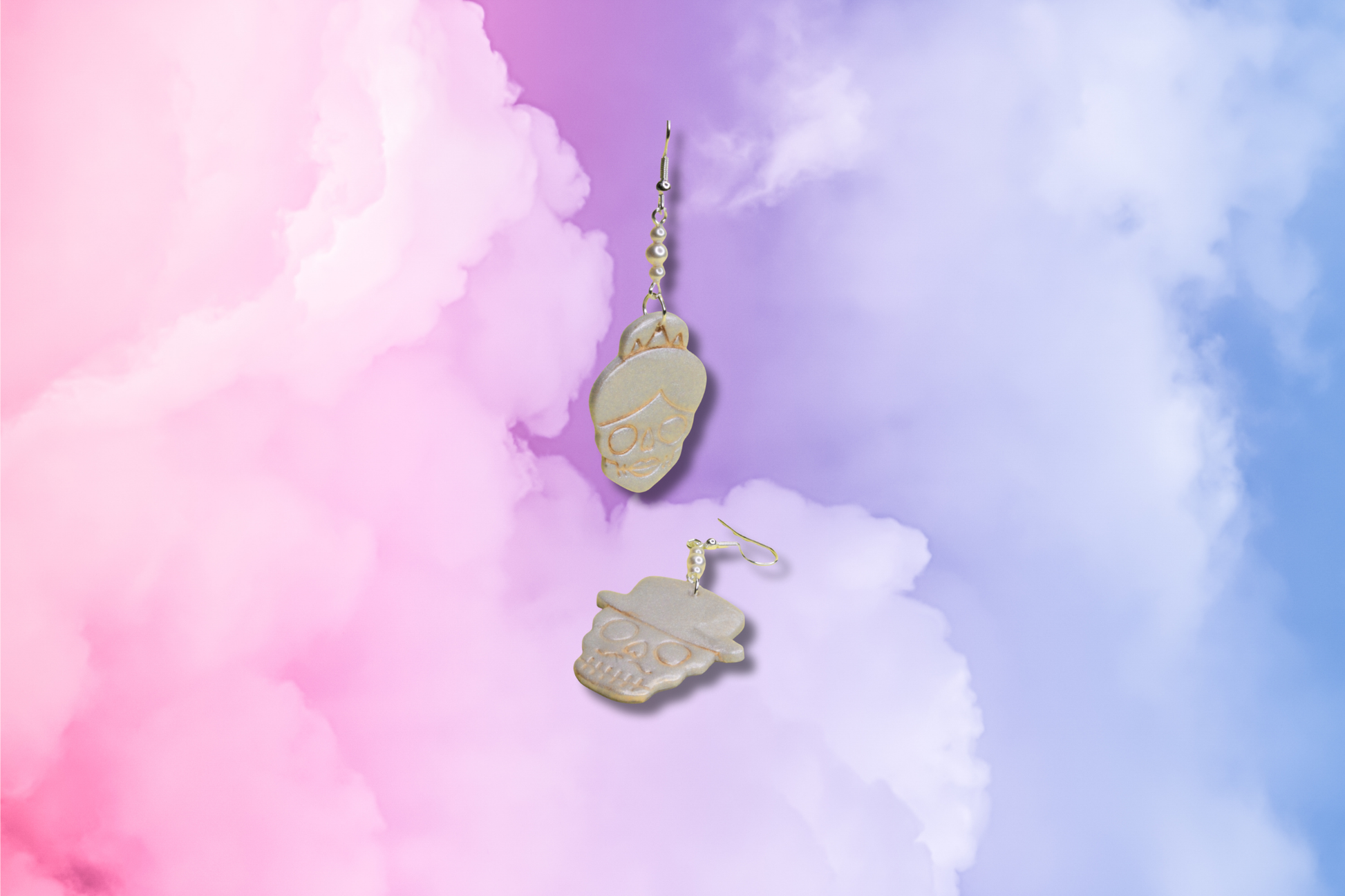 Day of the Dead White Man and Woman with Pearl Swarovski Earrings