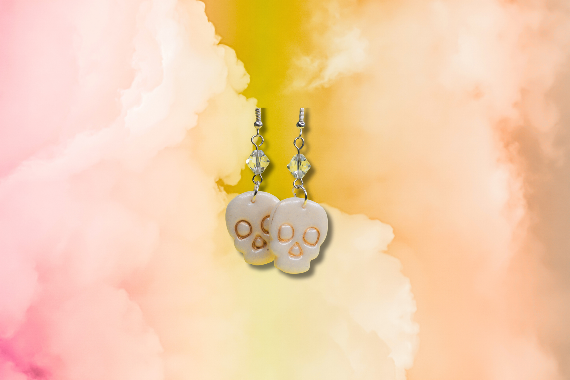 Glow in the Dark Skull with Large Clear Swarovski Earrings